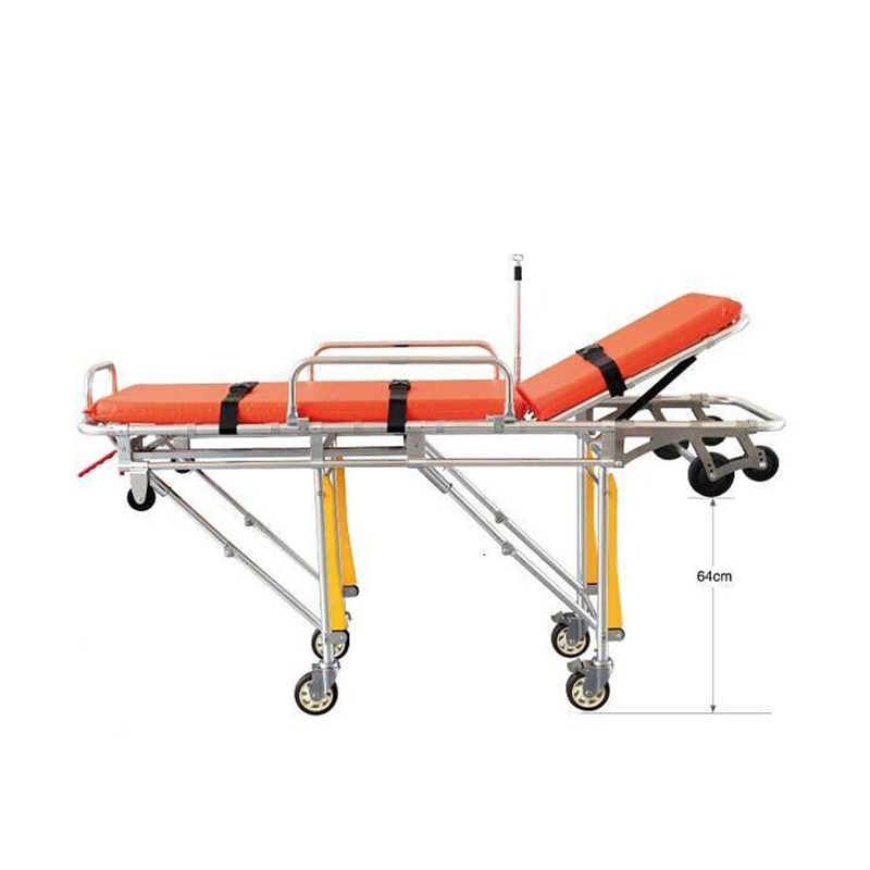 HS7123 Stainless Steel Wheeled Stretchers are primarily used in acute out-of-hospital care situations by emergency medical services (EMS), military, and search and rescue personnel. In medical forensics the right arm of a corpse is left hanging off the stretcher to let paramedics know it is not a wounded patient