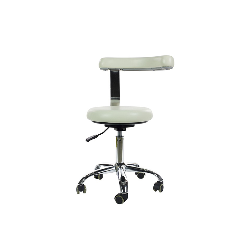 Adjustable height, 360° swivel specialty stool for health care applications. Adjustable height and 360° rotating support arm.