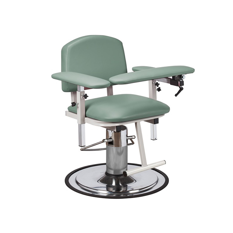 The H-Series Blood Drawing Chair with Padded Arms is a hydraulic lift chair complete with 8 arm style choices. The chair rotates smoothly and may be locked snugly into position when the foot pedal is raised.